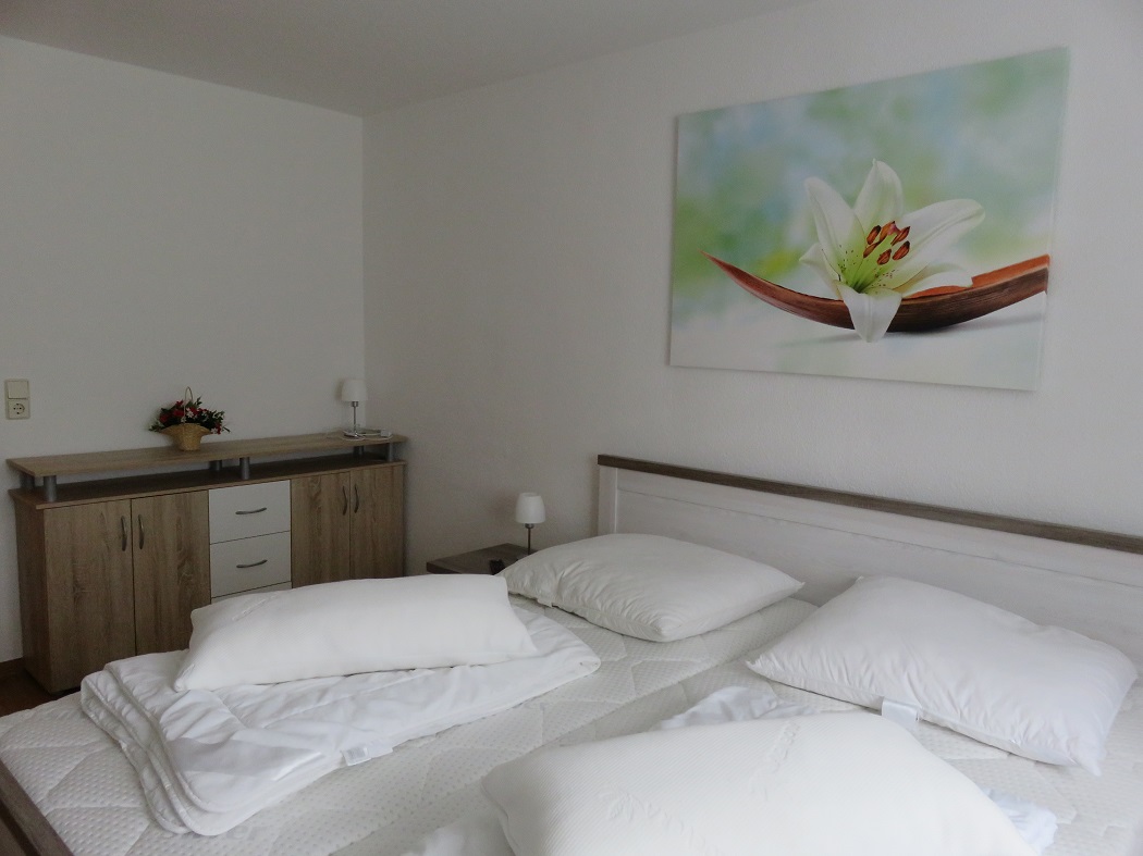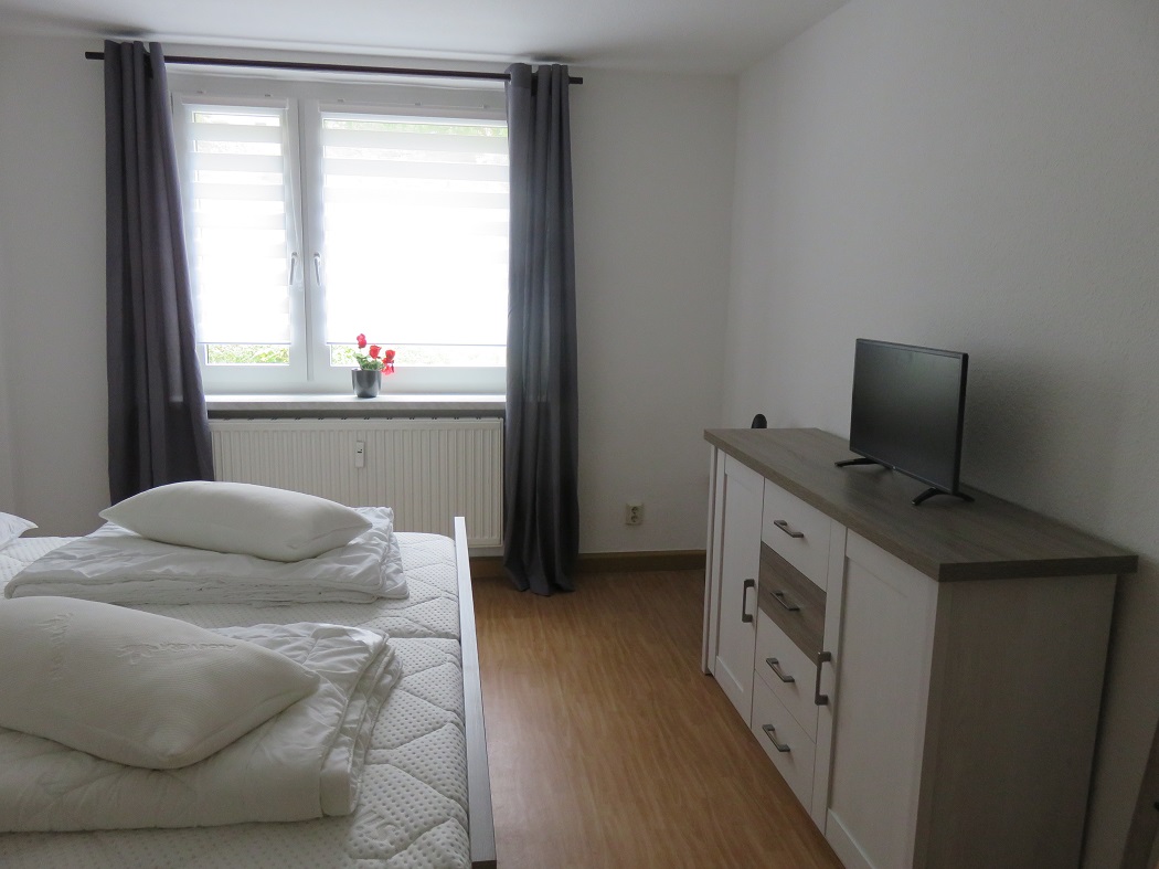 In dieser 2 1/2- Raum - Wohnung können bis zu sechs Personen untergebracht werden. In drei Räumen mit je zwei Schlafstätten finden Sie angenehme Ruhe. Wir bieten eine komplett eingerichtete Küche für Selbstversorger, Fernsehen mit Kabelanschluss, kostenloses WLAN sowie Bad mit Wanne.