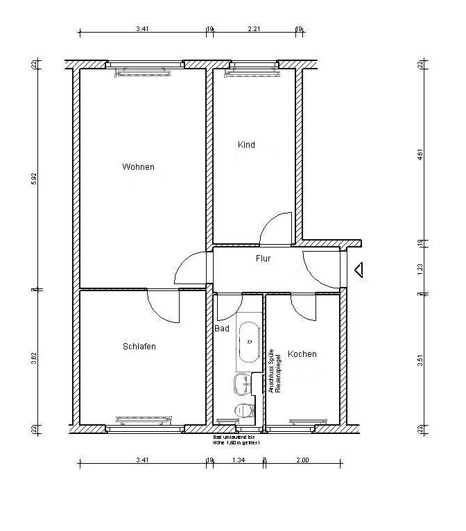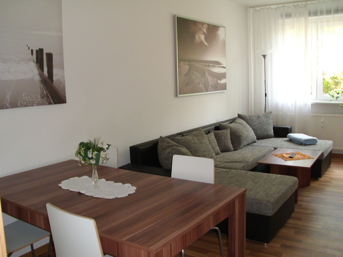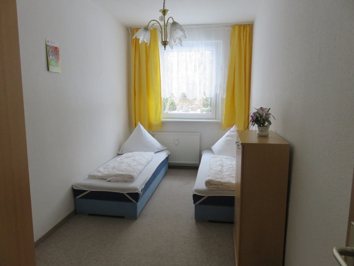 In dieser 2 1/2-Raum-Wohnung können bis zu sechs Personen untergebracht werden. In drei Räumen mit je zwei Schlafstätten finden Sie angenehme Ruhe. Wir bieten eine komplett eingerichtete Küche für Selbstversorger, Fernsehen mit Kabelanschluss, kostenloses WLAN sowie Bad mit Dusche.