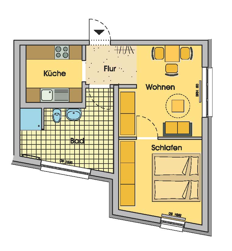 Die Wohnung befindet sich in unserem Neubau im Erdgeschoss links und bietet Platz für 2 Personen.