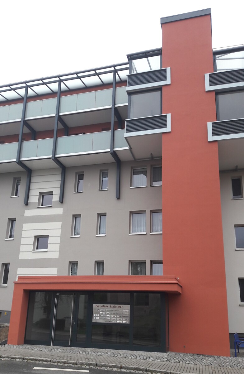 Die im Jahr 1954 gegründete Arbeiterwohnungsbaugenossenschaft "Glückauf" mit Sitz auf dem Richard-Wagner-Platz erweiterte ihren Wohnungsbestand 1965 in der Erich-Mäder-Straße um 60 Wohnungen. In einer neuen Bauweise entstanden 2-Raum-Wohnungen