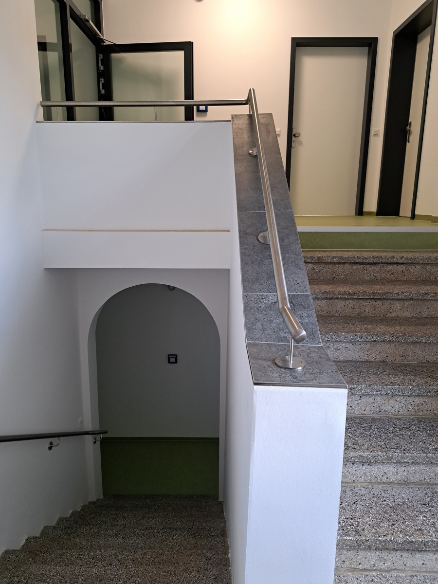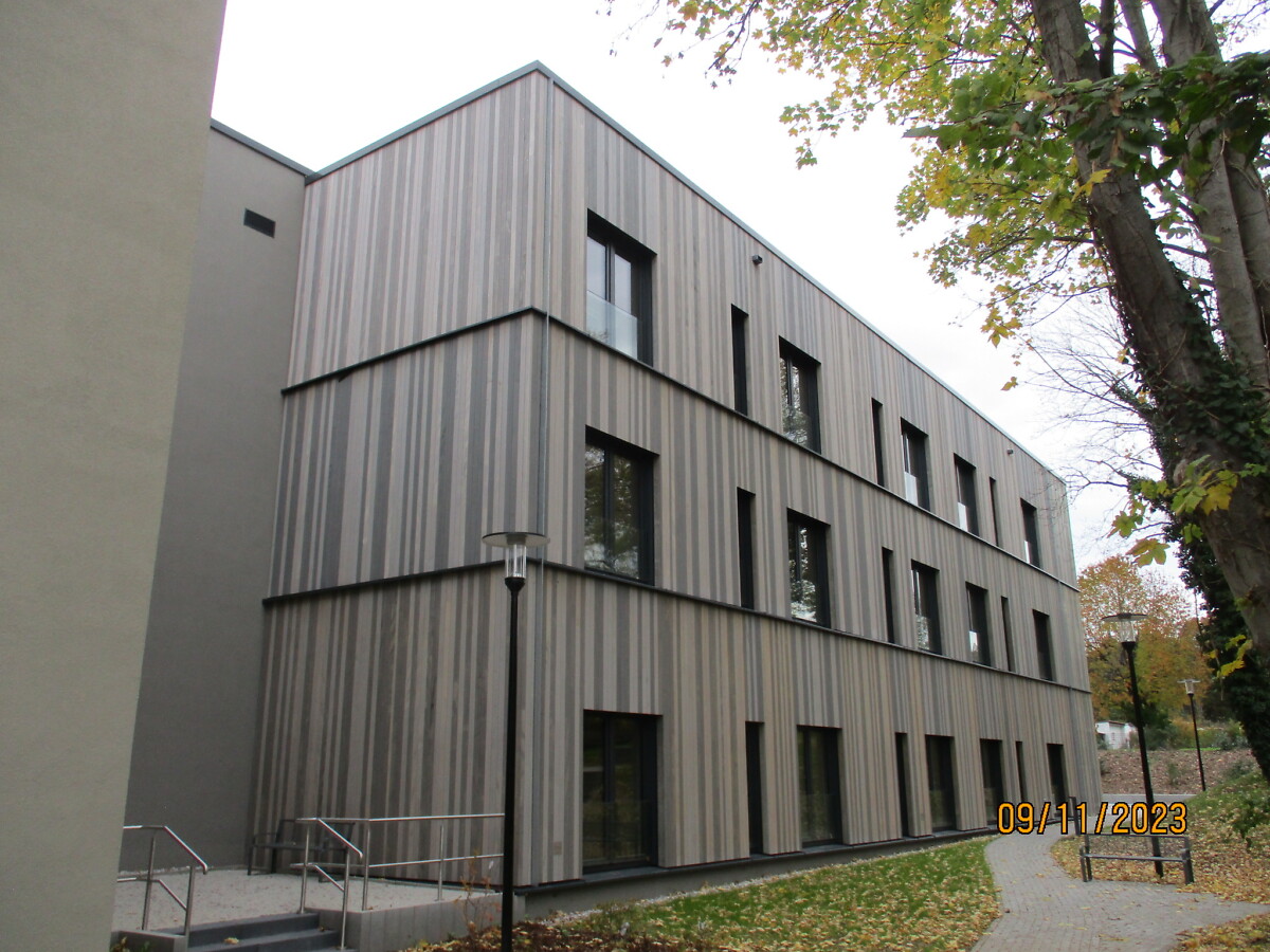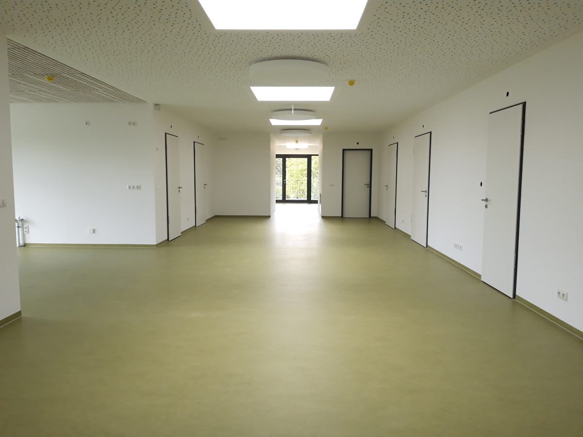 Wo vorher verwaiste, triste Lehrzimmer auf den Verfall warteten, strahlen jetzt helle, freundliche Räume. Auf drei Etagen im neuen Anbau sind moderne Appartements, Mehrzweckräume und große, lichtdurchflutete Flure entstanden.