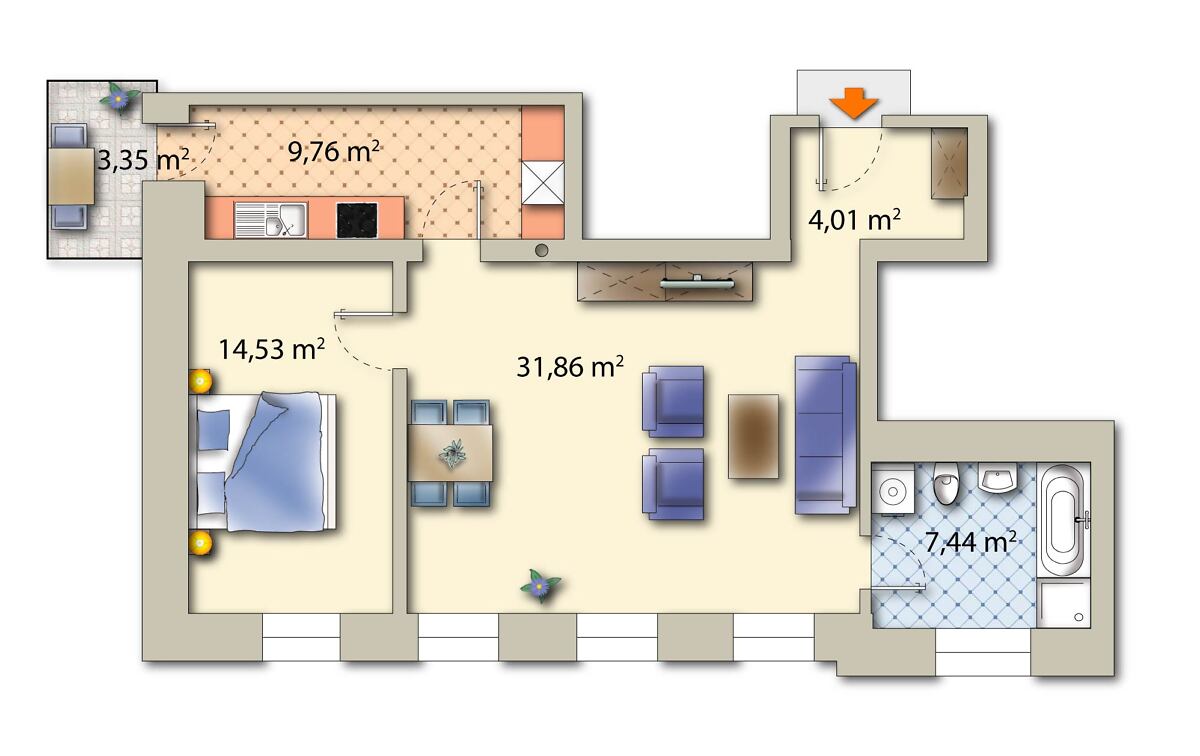 Die jeweils vier 1 1/2 - Raum bis 2 - Raum - Wohnungen im ersten und zweiten Obergeschoss des Hauptgebäudes sind altersgerecht, modern und funktional und werden durch die AWG vermietet.
